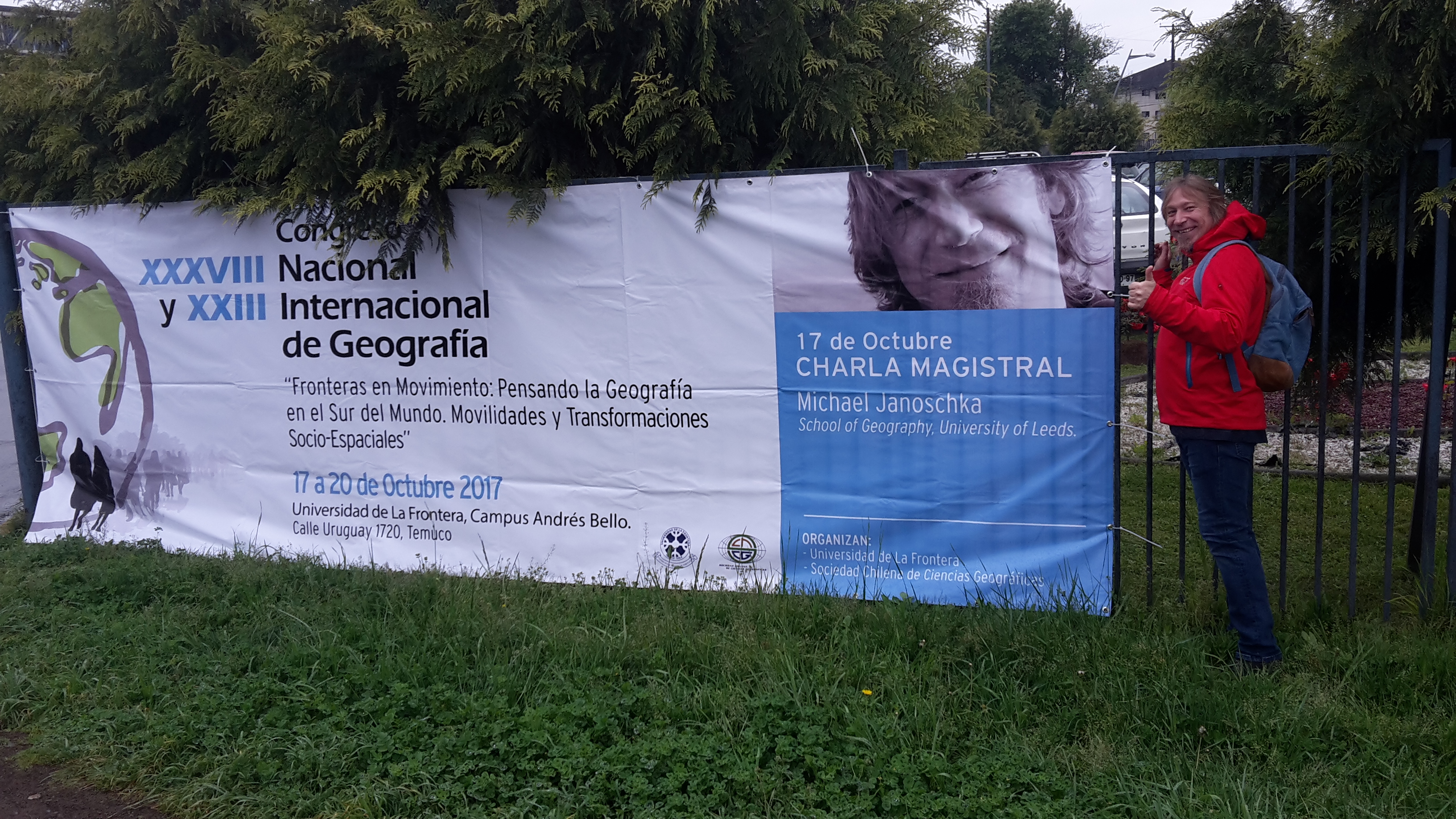 Conversación del Dr. Hugo Zunino quien es Director del Centro Internacional de Estudios de la Patagonia junto al Dr. Michael Janoschka de la University of Leeds en el marco del XXXVIII y XXIII Congreso Nacional e Internacional de Geografía celebrado en la Universidad de la Frontera entre los días 17 al 20 de Octubre de 2017. Temuco-Chile